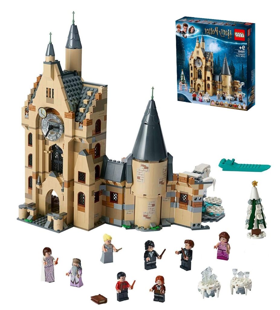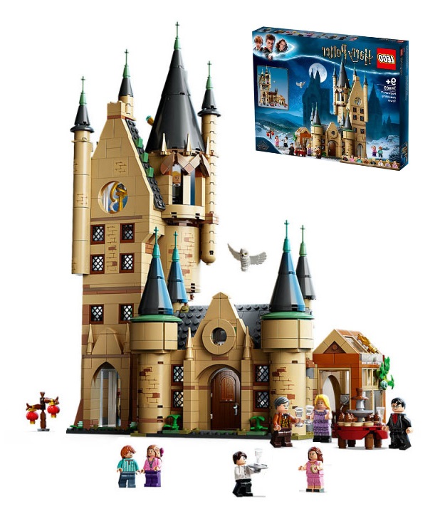 La Torre del reloj. En los principios de Hogwarts fue la entrada al castillo. En esta torre se encuentra la enfermería y el reloj aparte de numerosos pasillos y escaleras. Esta pack contiene 8 figuras ( Ron Weasley, Harry Potter, Hermione Granger, Fleur Delacour, Viktor Krum, Albus Dumbledore, Cedric Diggory y Madame Maxime) y 922 piezas en total.