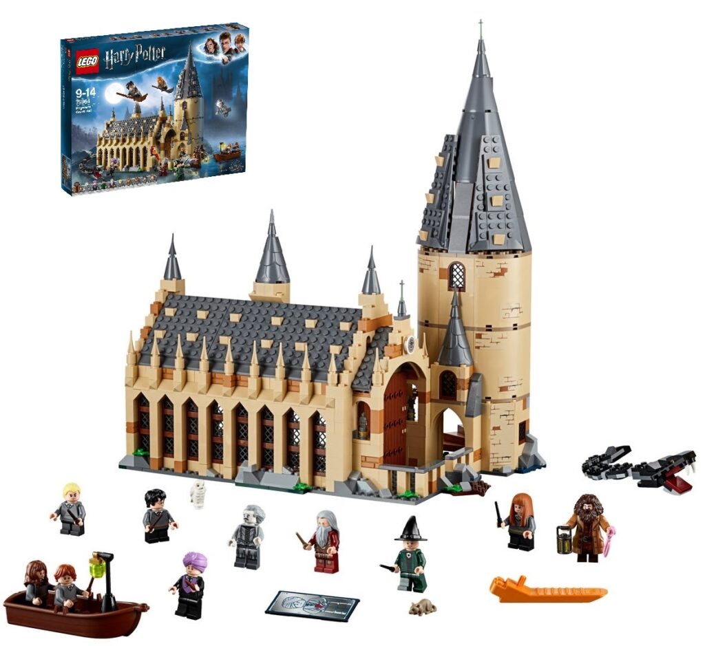 El Gran comedor de Hogwarts, con 10 figuras lego de Ron Weasley, Hermione Granger, Harry Potter, Susan Bones, la Profesora McGonagall, Draco Malfoy, el Profesor Quirrell con doble cara, Nick Casi Decapitado, Hagrid y Albus Dumbledore. Este fantástico juguete cuenta también con el Basilisco y las figuras de Hedwig y Scabbers.